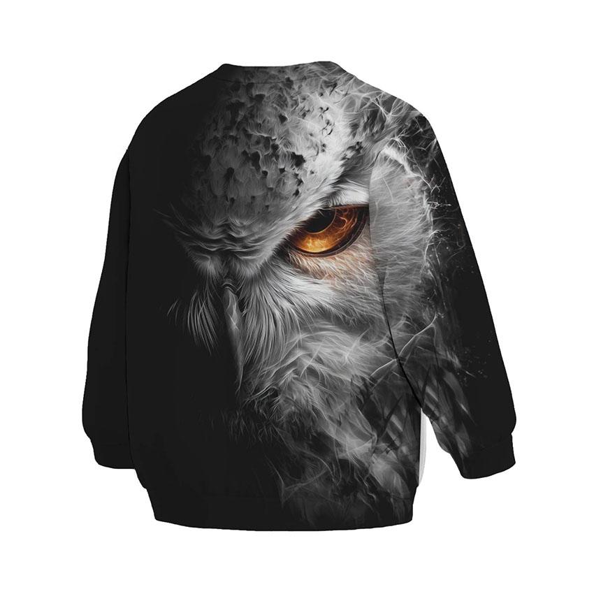 Свитшот детский с принтом «Сова. Охранник ночи. Owl. Guardian of the night» — идеальный выбор для тех, кто ценит комфортную и функциональную одежду. Данная модель подходит как для активного дня в городе, так и для вечернего релакса дома. Данная модель подходит как для активных игр ребенка, так и для спокойных прогулок.