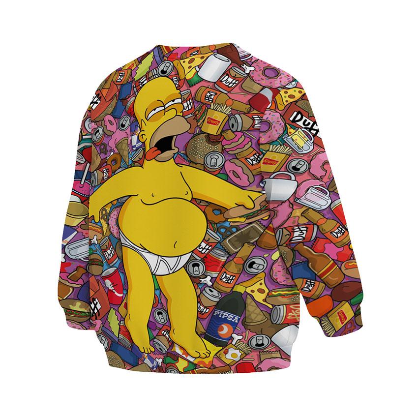 Свитшот детский с принтом «Симпсоны. Гомер с пончиками. The Simpsons. Homer with donuts» — идеальный выбор для тех, кто ценит комфортную и функциональную одежду. Данная модель подходит как для активного дня в городе, так и для вечернего релакса дома. Данная модель подходит как для активных игр ребенка, так и для спокойных прогулок.