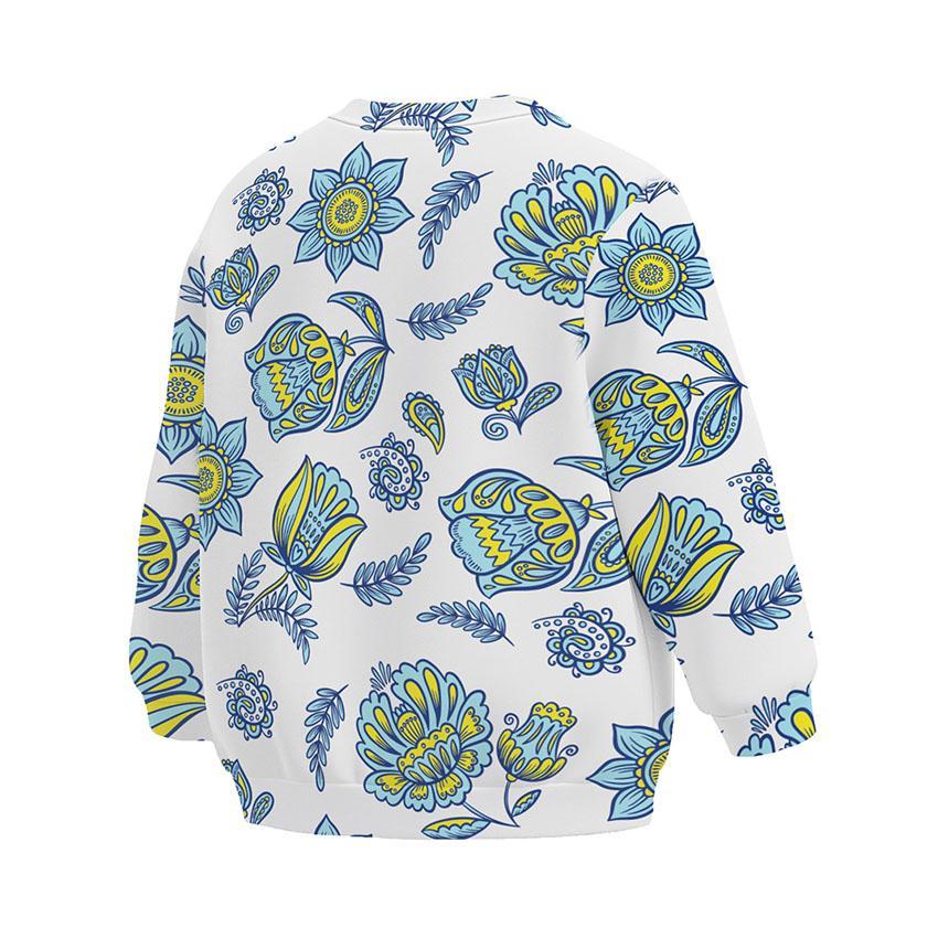 Свитшот детский с принтом «Цветочная Украина. Floral Ukraine» — идеальный выбор для тех, кто ценит комфортную и функциональную одежду. Данная модель подходит как для активного дня в городе, так и для вечернего релакса дома. Данная модель подходит как для активных игр ребенка, так и для спокойных прогулок.