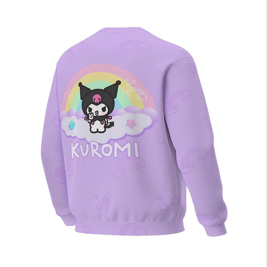 Свитшот с принтом «Куроми. Санрио. Kuromi. Sanrio» — идеальный выбор для тех, кто ценит комфортную и функциональную одежду. Данная модель подходит как для активного дня в городе, так и для вечернего релакса дома.