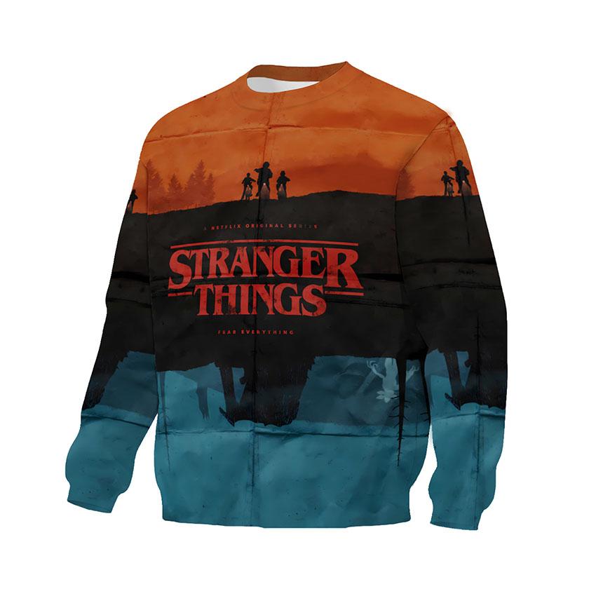 Свитшот с принтом «Очень странные дела. Ночной поход. Stranger Things. Night Walk» — идеальный выбор для тех, кто ценит комфортную и функциональную одежду. Данная модель подходит как для активного дня в городе, так и для вечернего релакса дома.