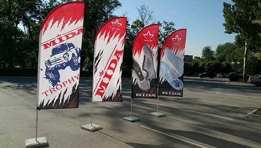 - Виготовляємо прапори будь-яких розмірів і форм: прапори для приміщень, настільні та вуличні прапори, віндери